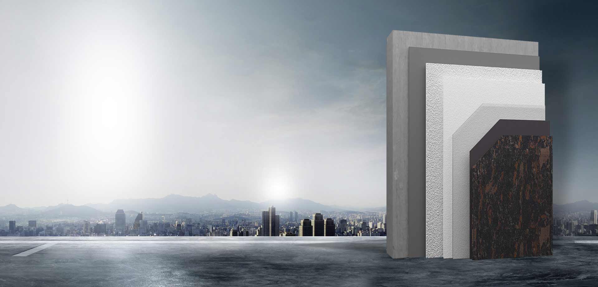 4D仿石漆采用由高分子乳液聚合物和天然石英砂、高分子水性耐候树脂等材料,利用独创融合技术,形成不规则花纹的仿火烧面花岗岩纹理和色彩。
